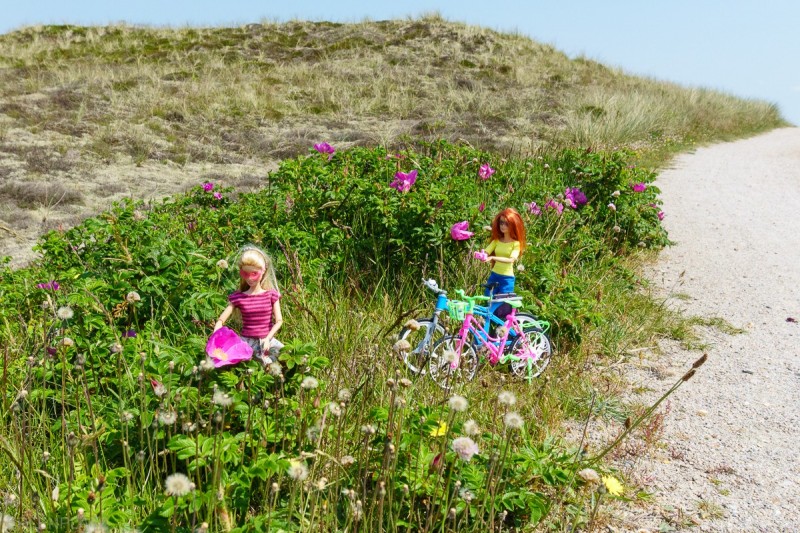 Es gibt so viele Heckenrosen. Emma: 'Schau doch mal, da, vor der Düne. Davon möchte ich auch ein Foto'.