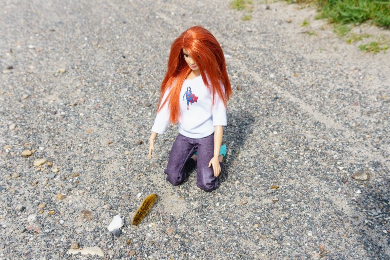 Hannah trifft eine kleine Raupe Nimmersatt.